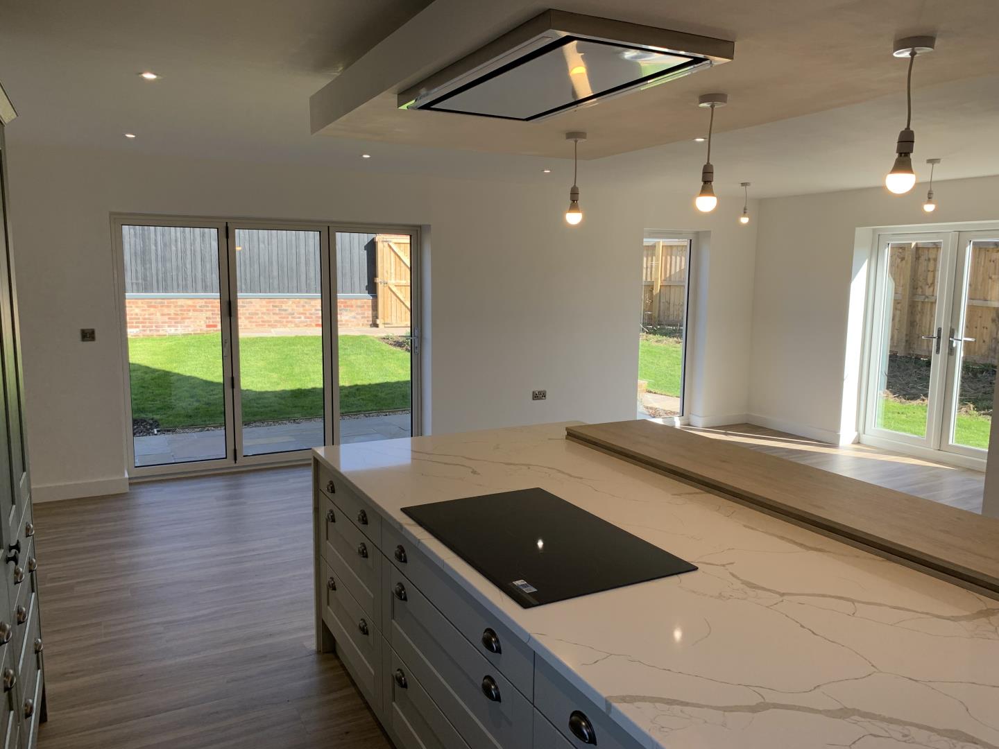 - Large Light and Airy Open Plan Kitchen/Living/Dining Room with 3 Sets of Patio Doors